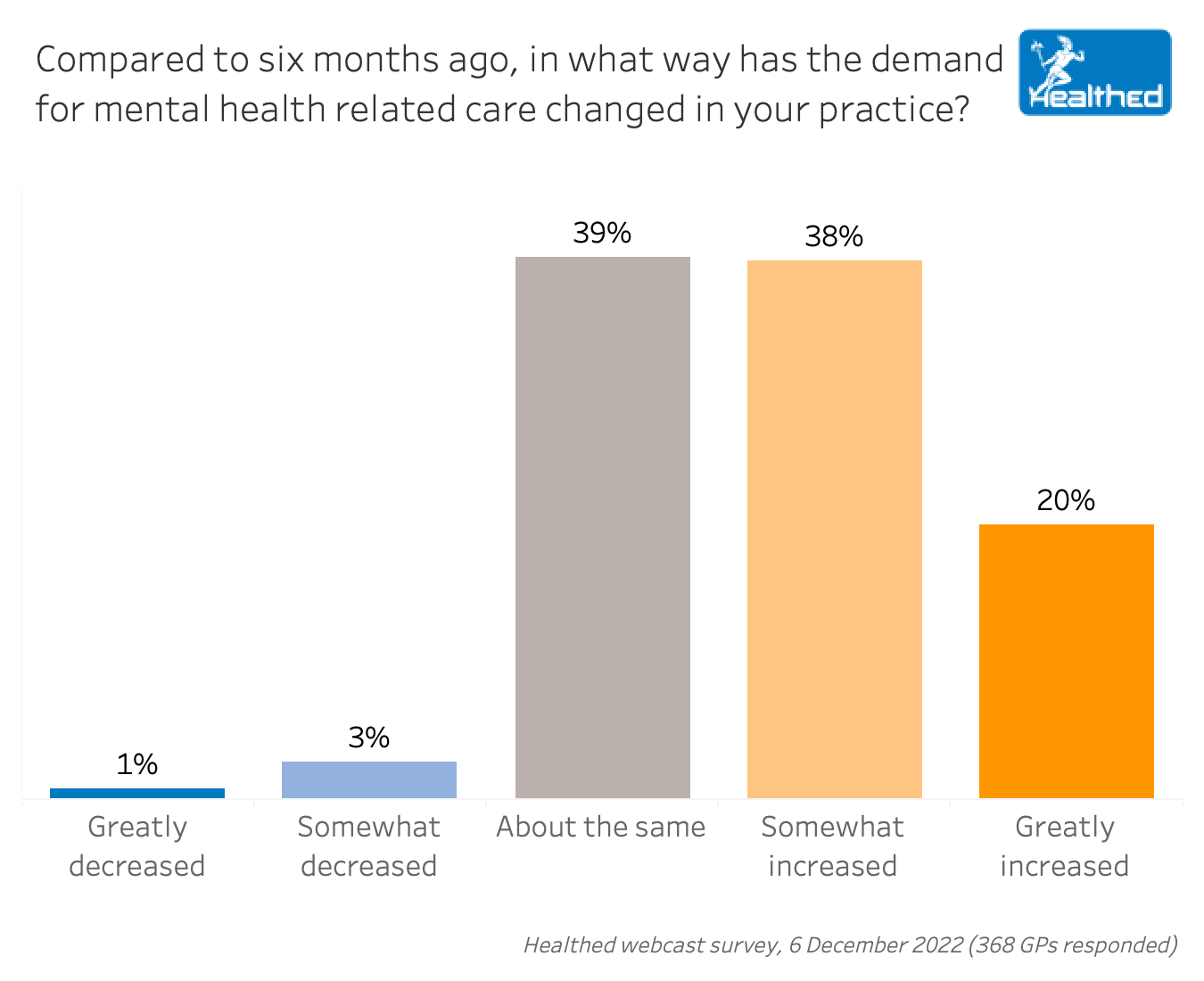 Nearly 60% of GPs say demand for mental health related care has risen in the past six months, despite politicians claiming the pandemic is easing—new survey data from Healthed suggests.