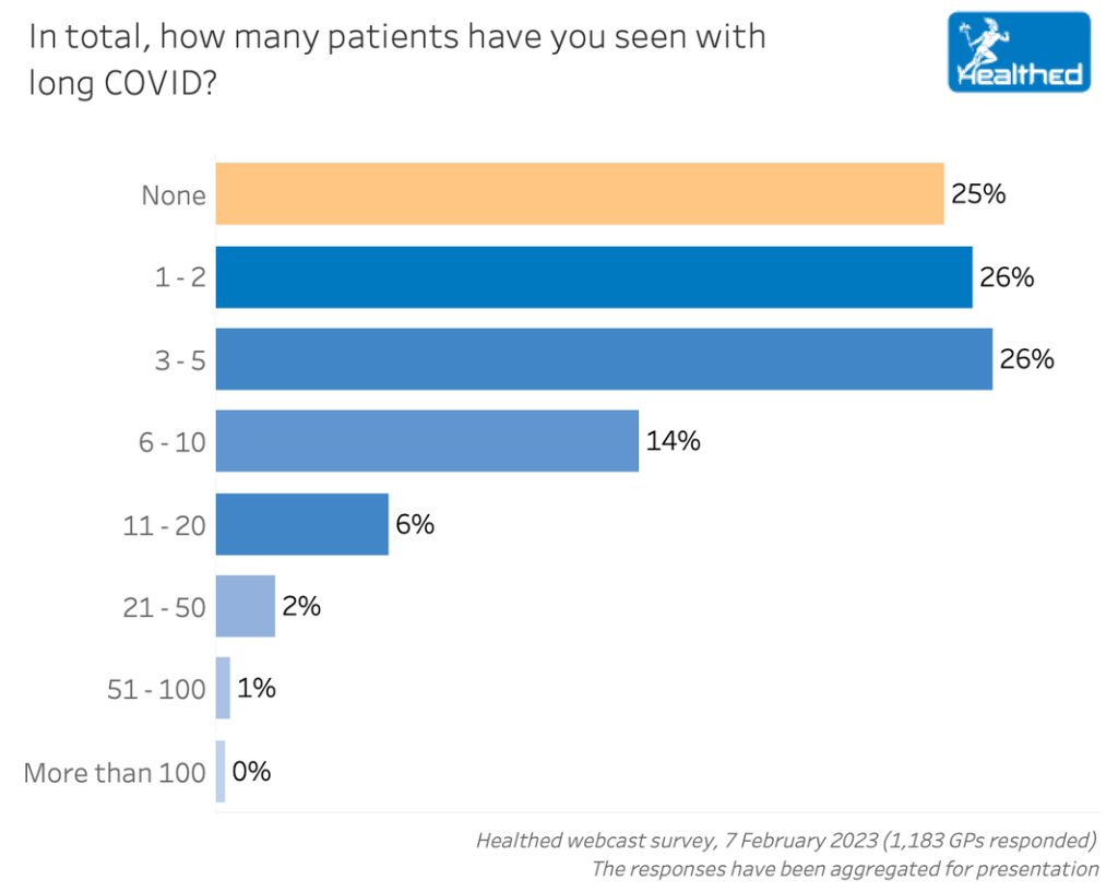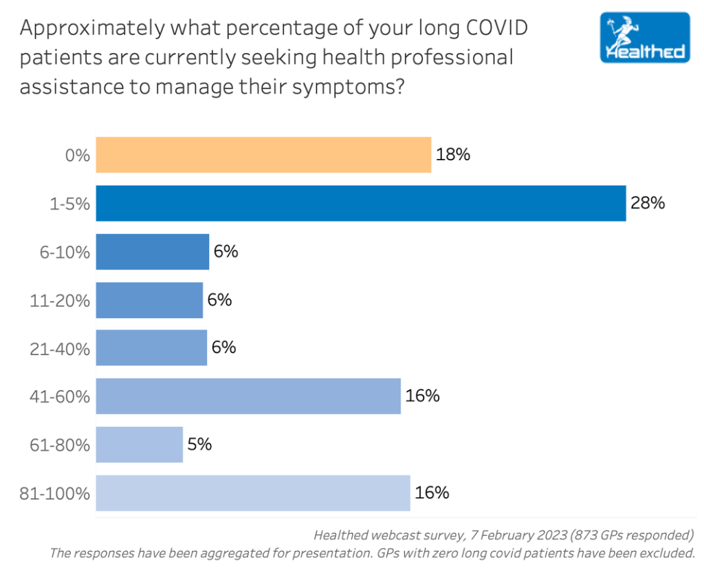 In Healthed’s survey, more than 80% of GPs said at least some of their patients are seeking health assistance currently, and for many GPs this represents a significant proportion of their long COVID patients.