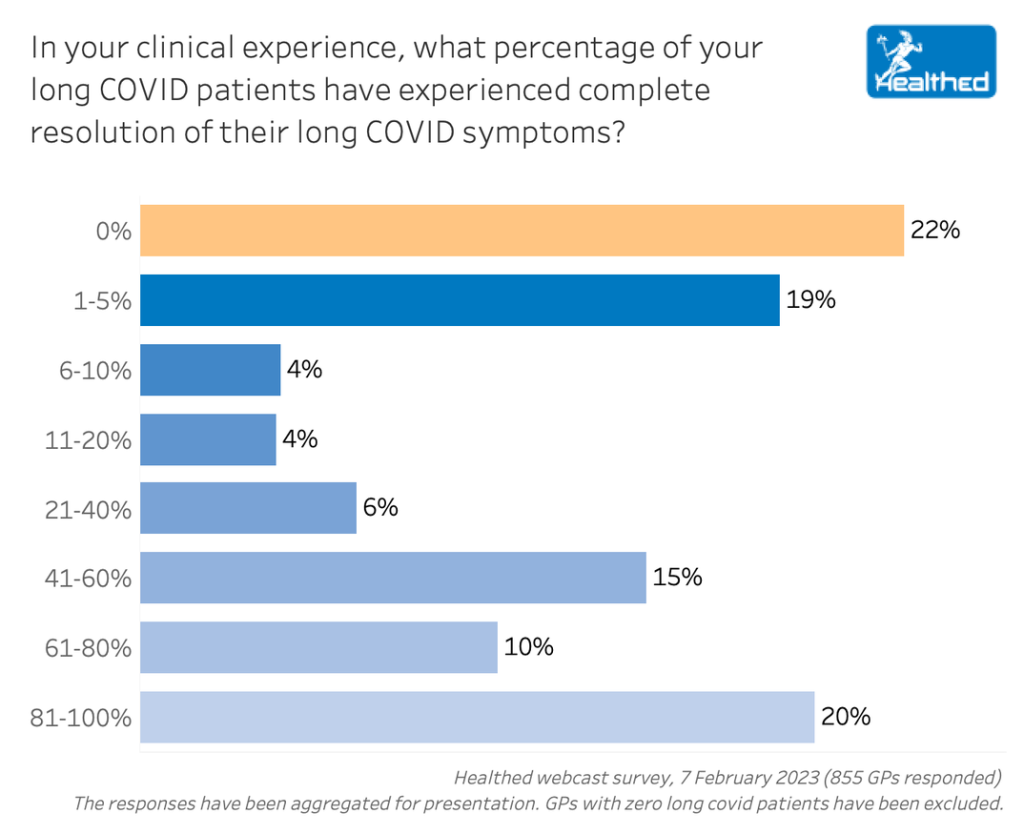 Healthed asked GPs what percentage of their long COVID patients have experienced complete resolution of their symptoms.