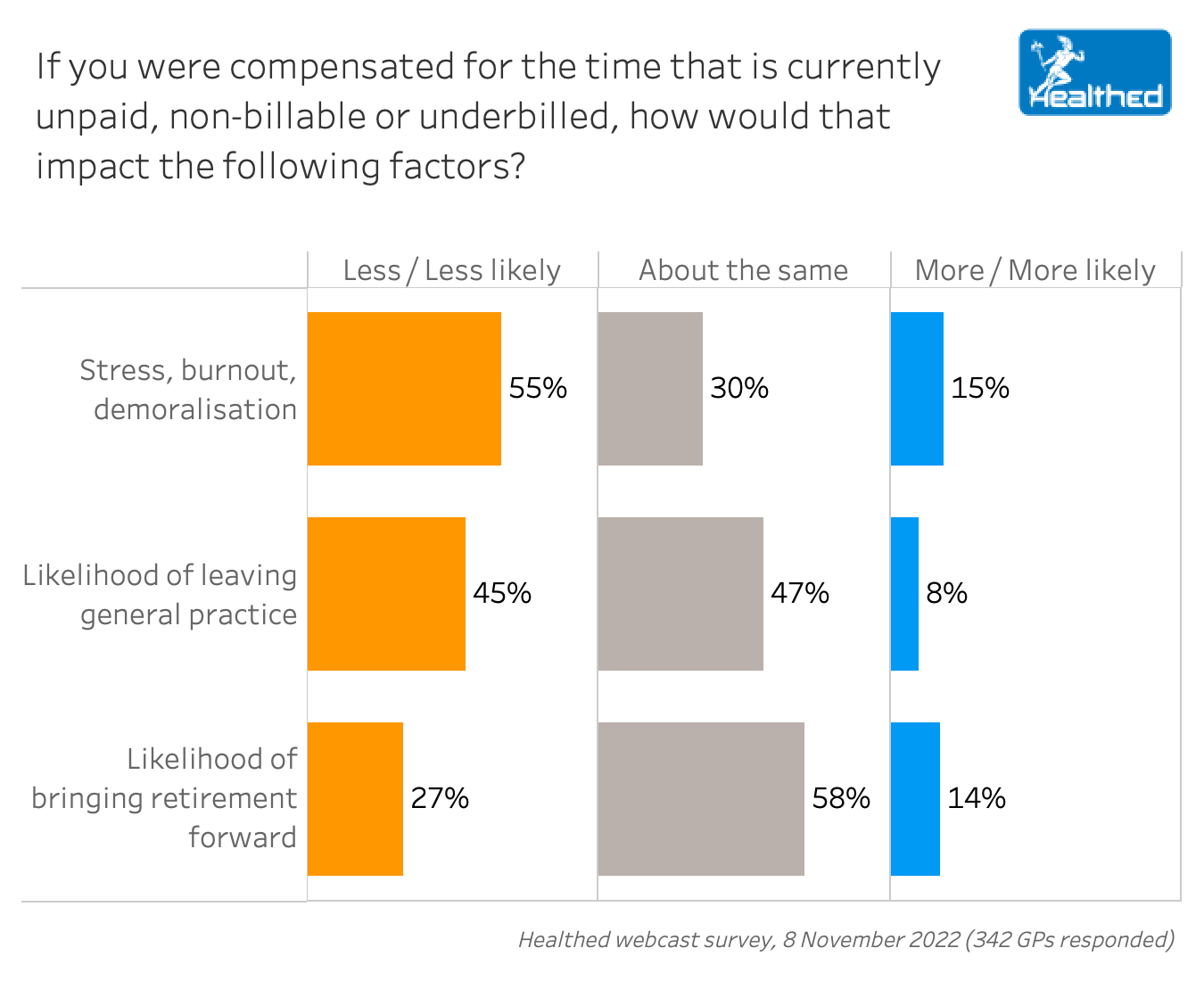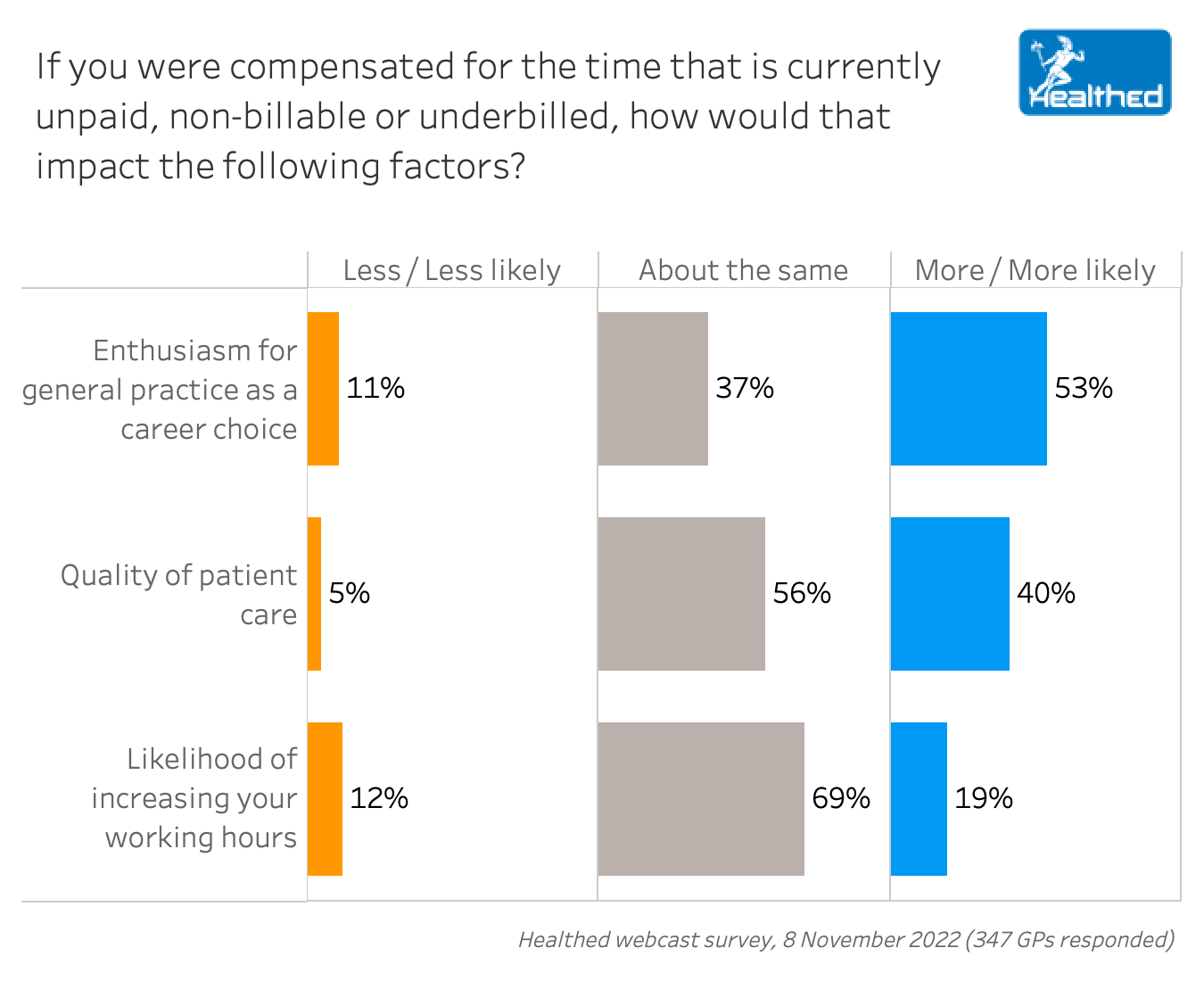Healthed also asked GPs: “If you were compensated for the time that is currently unpaid, non-billable or underbilled, how would that impact the following factors?”