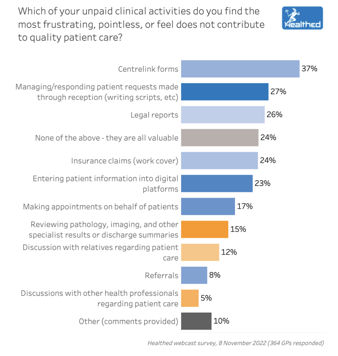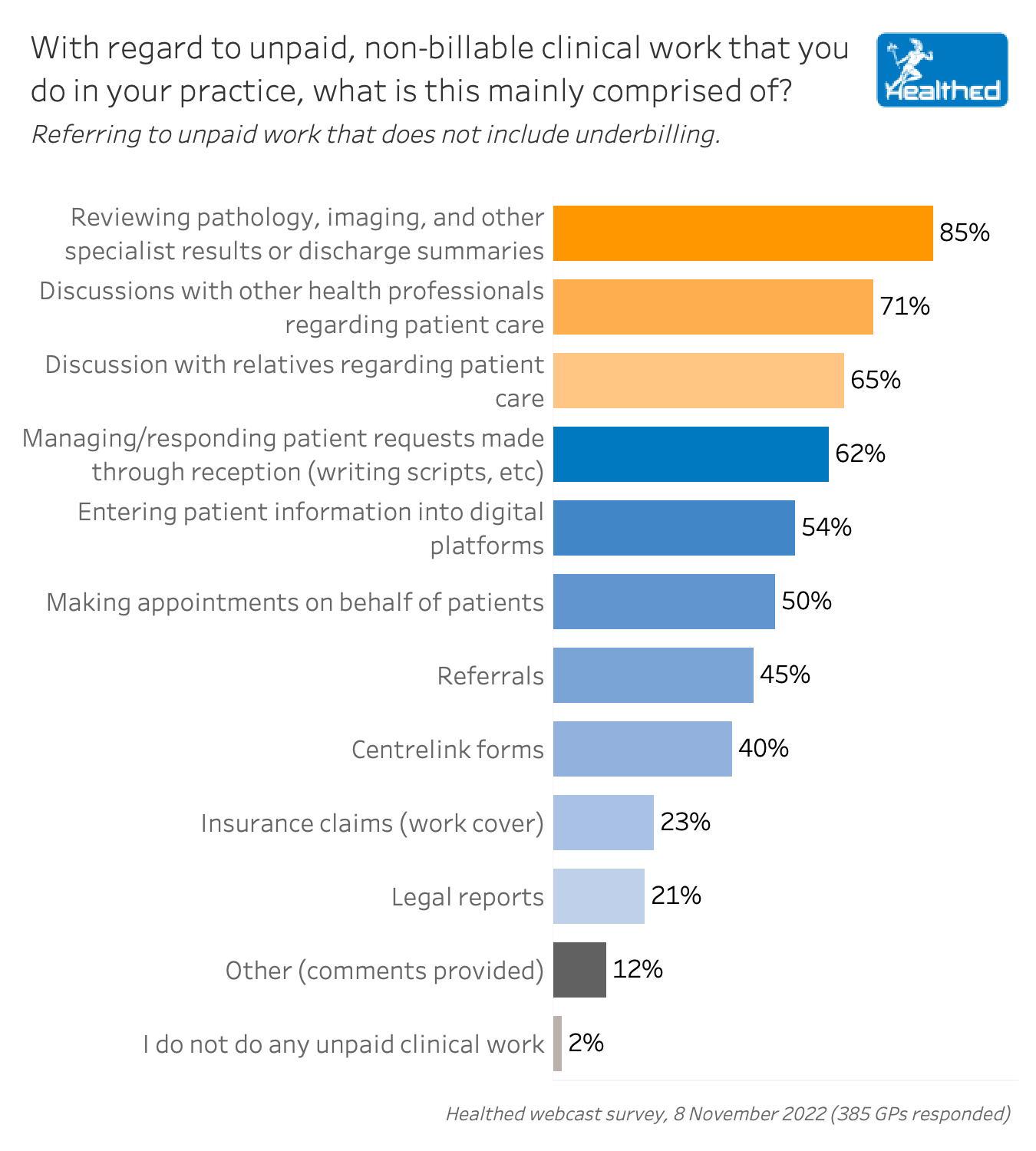 Healthed also asked GPs what type of non-billable work they were doing. GPs could select multiple options.